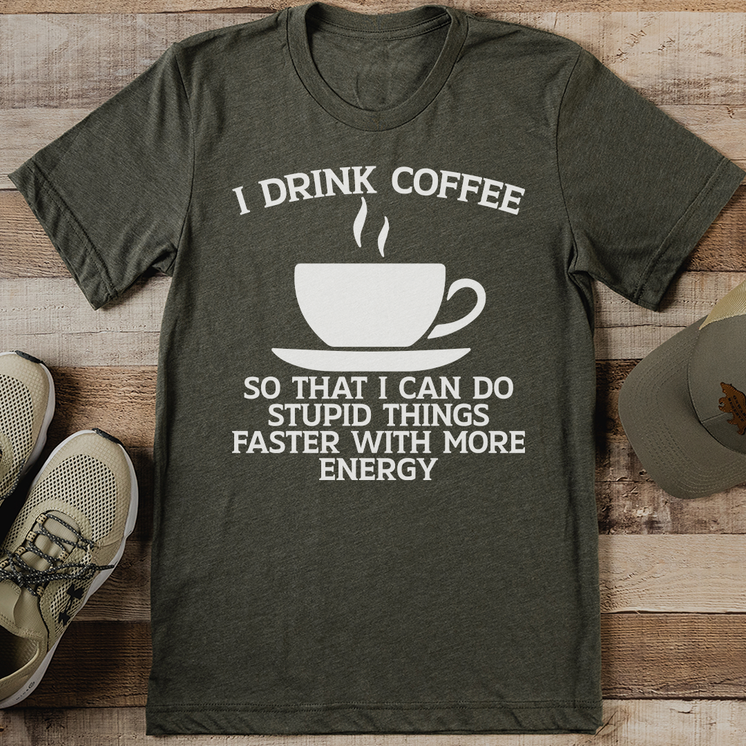 I Drink Coffee So That I Can Do Stupid Things Faster With More Energy Tee L Olive