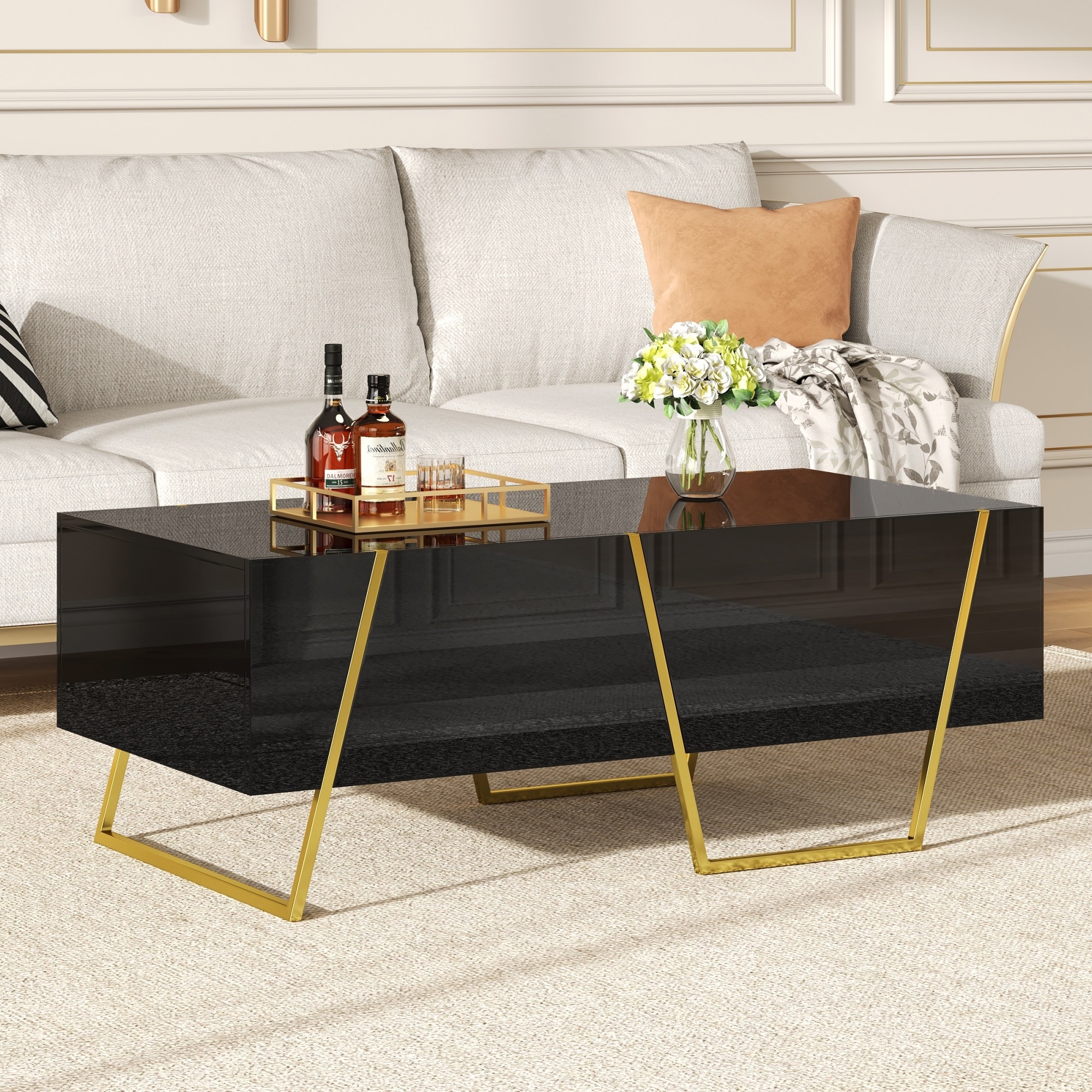 Modern Rectangular High-Gloss Coffee Table With Storage And Sturdy Base