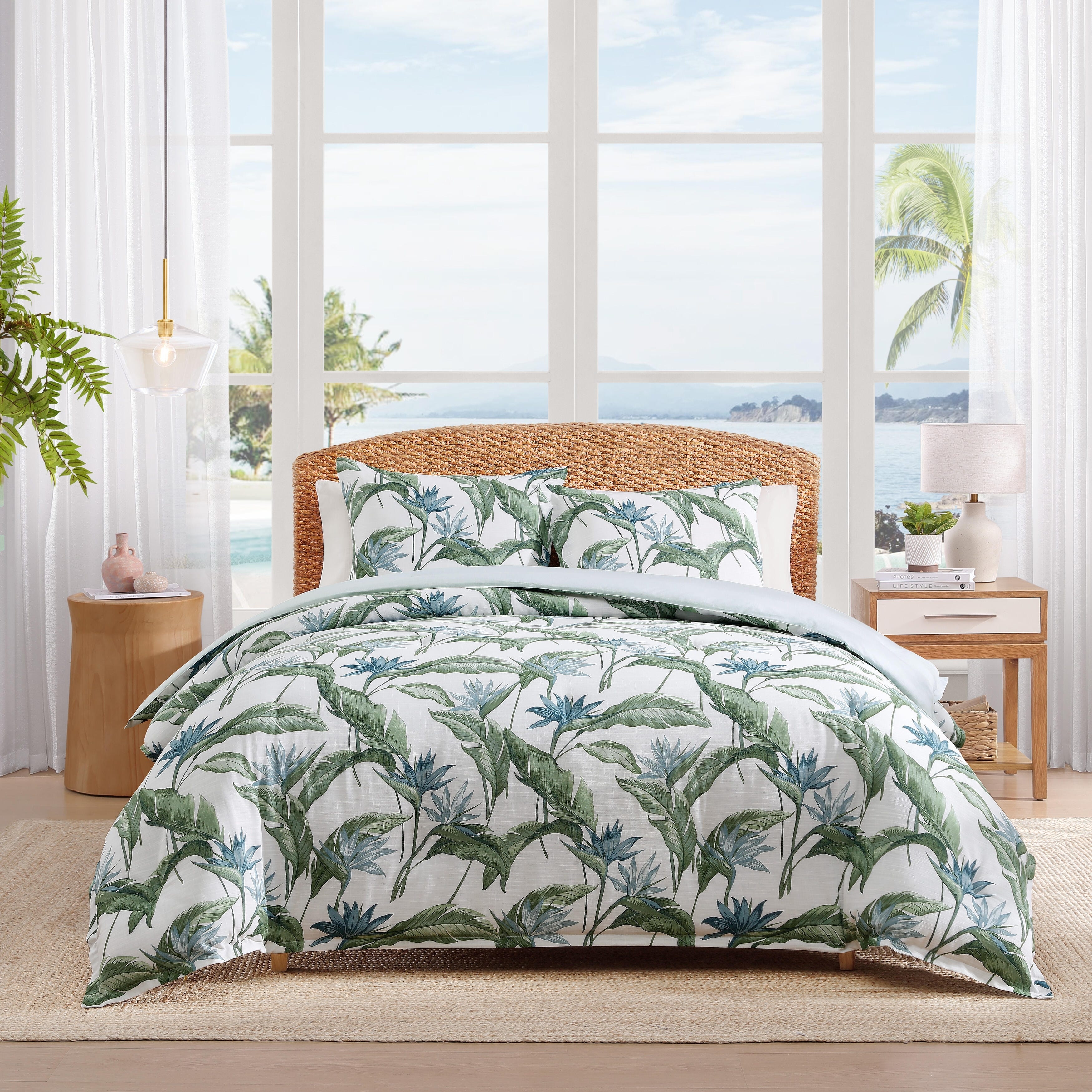 Tommy Bahama Birds Of Paradise Cotton Reversible Blue Comforter Set