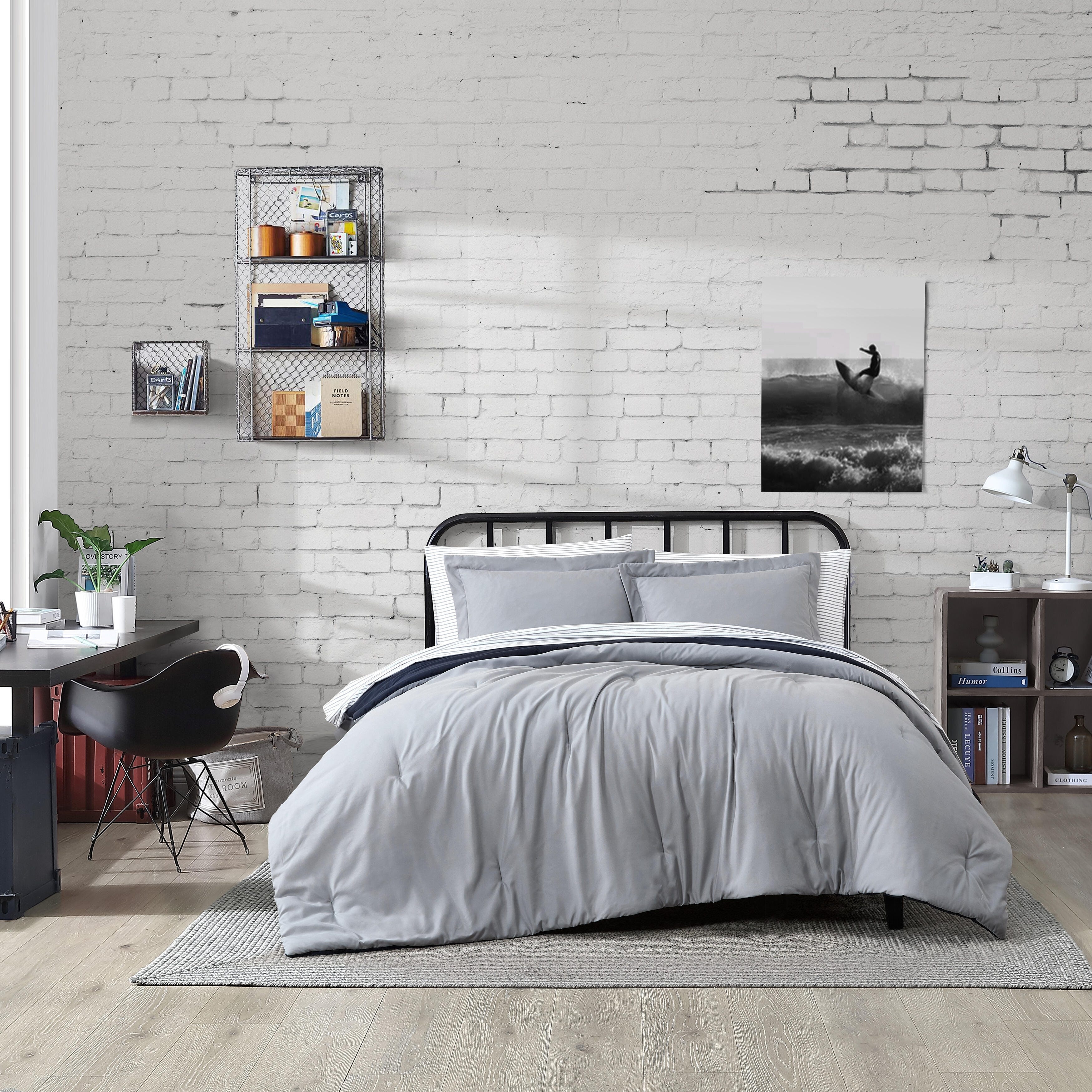 Nautica Hayes Solid Reversible Grey Comforter Bonus Set
