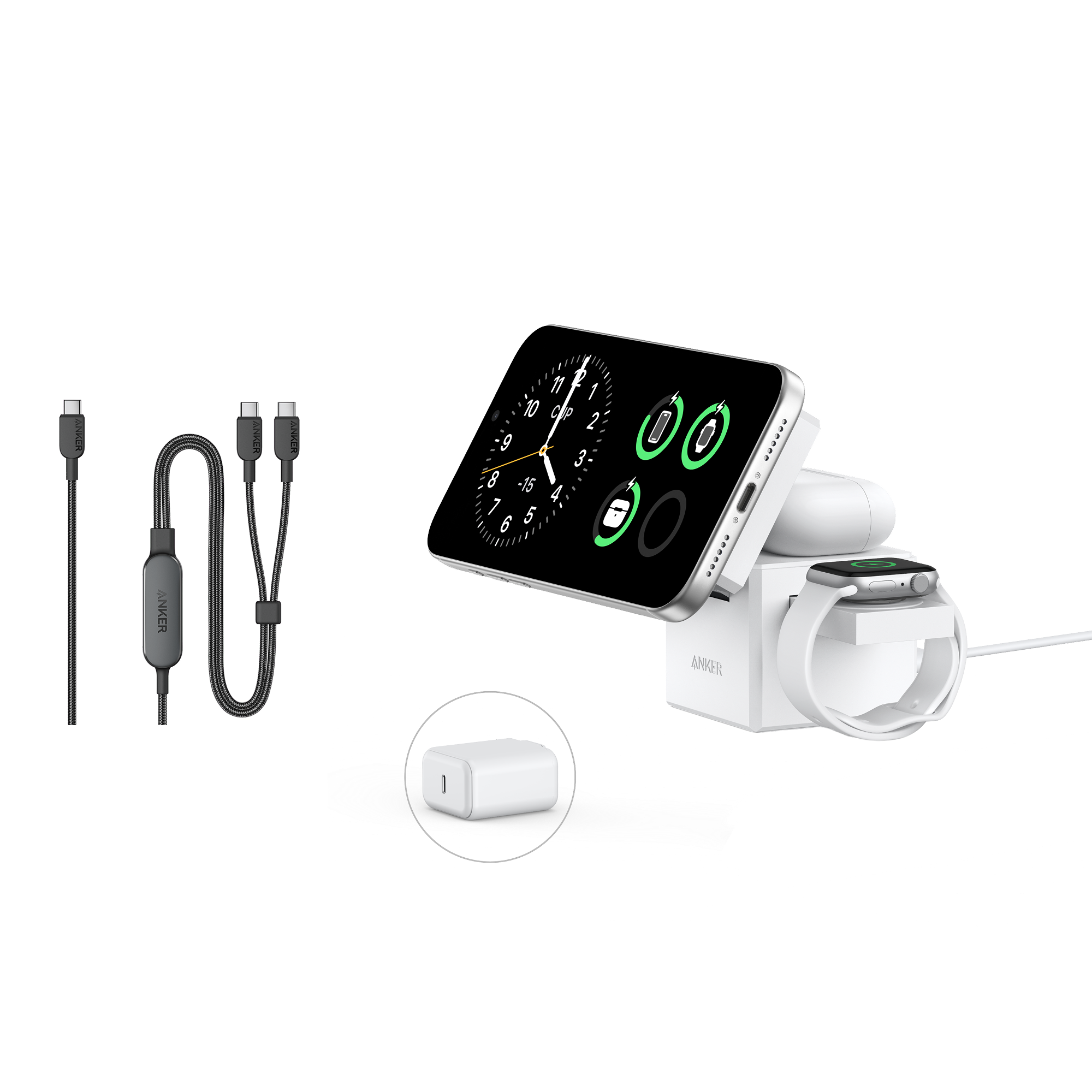 Anker 3-in-1 Cube with Qi2 and Anker 140W 2-in-1 USB-C to USB-C Cable
