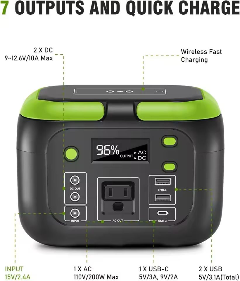 Portable Power Station With AC Outlets 200W 300W 600W Solar Generator For Camping And Home Backup 200w Grey Green us Plug