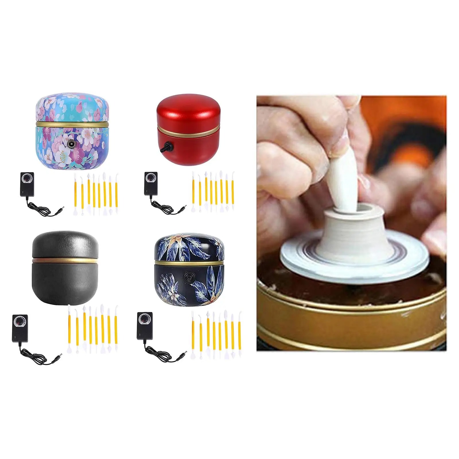 Mini Electric Pottery Wheel Machine Adult Children Ceramic Art Machine With Tray Speed Adjustable Trimming Tools dark Blue