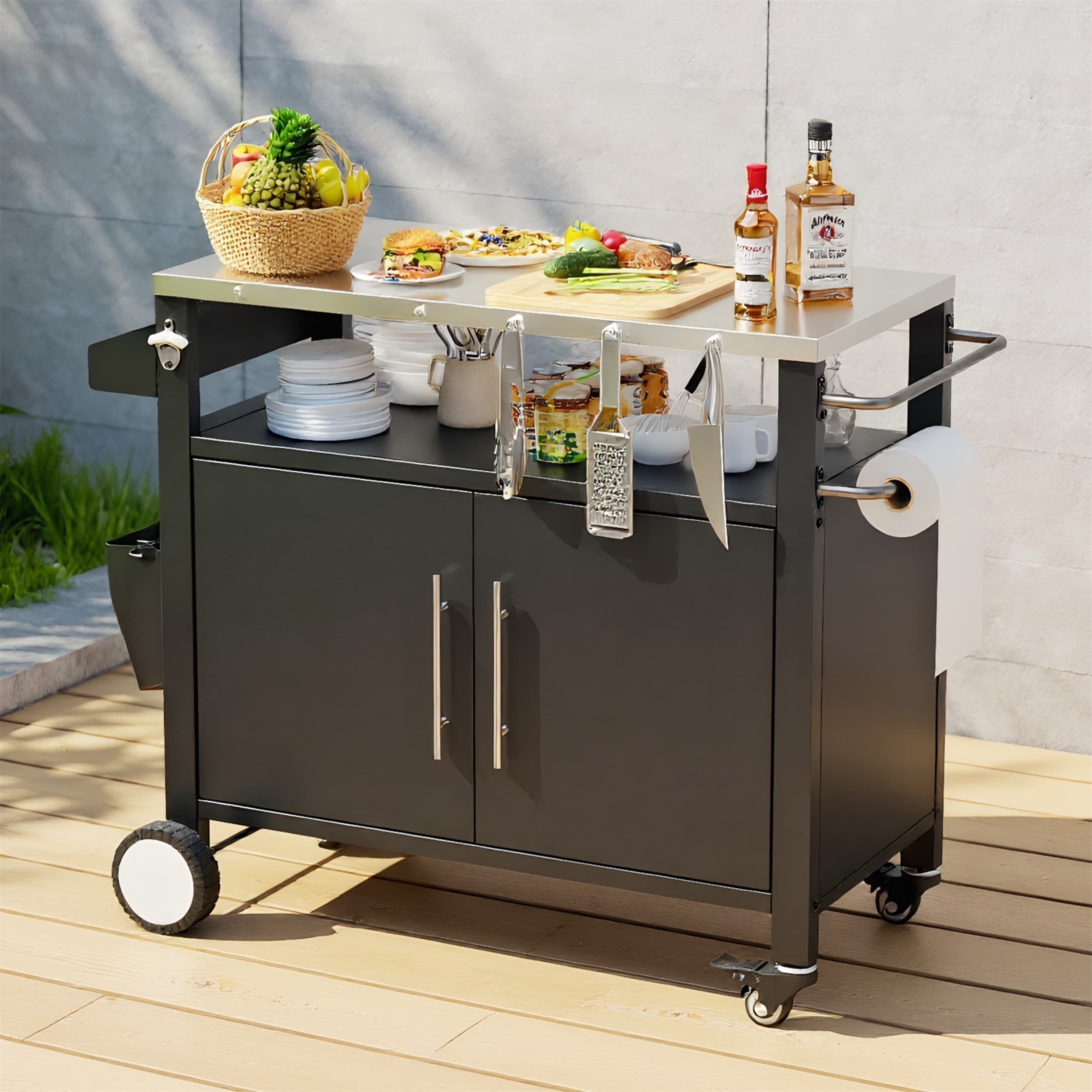 Heavy-Duty Grill Cart w/ Stainless Steel Top, Lockable Wheels, Cabinet