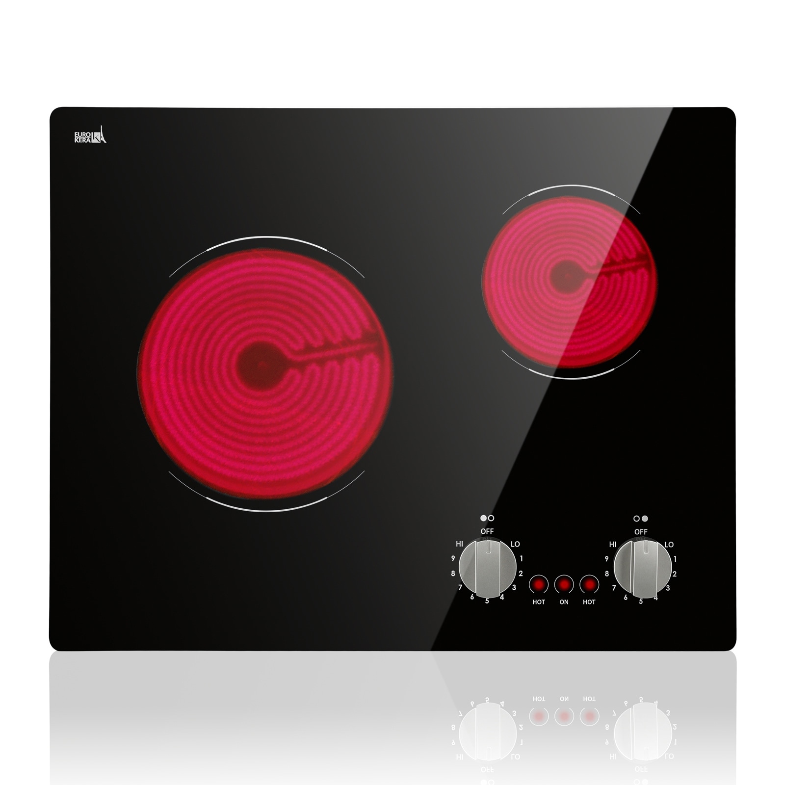 21" Double Electric Cooktop 3700W - 9 Heating Levels Mechanical Knob Hard Wired (Black)