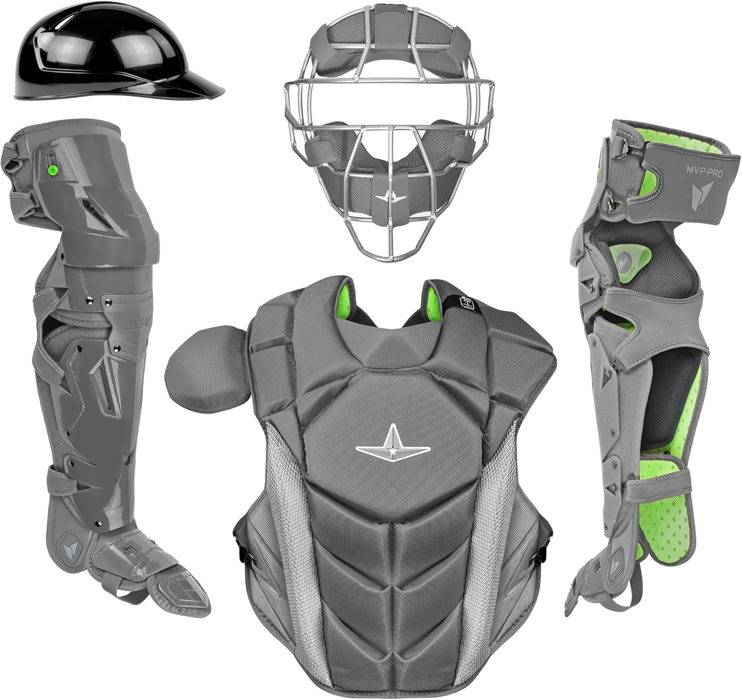All Star MVP-Pro NOCSAE Certified Adult Traditional Mask Baseball Catcher's Set Graphite