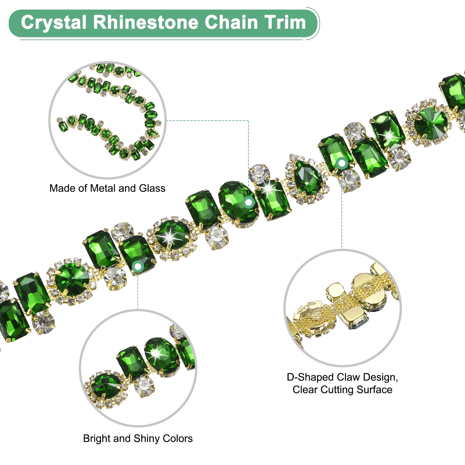 Crystal Rhinestone Chain Trim, Crystal Applique Strips String, Bling Shiny Crystal Chain Applique for Crafts - 1 Yard