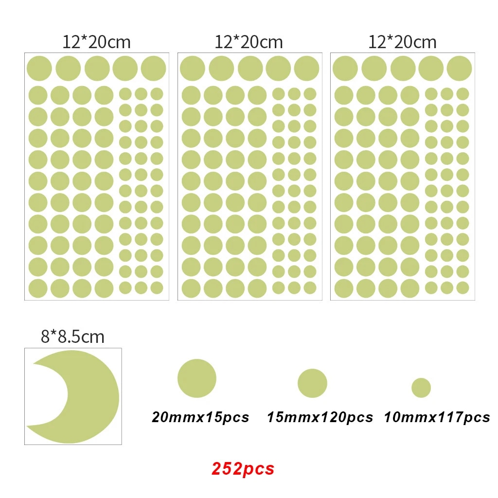 Luminous Moon Stars Wall Stickers: Glow in the Dark Earth Decals For Kids Bedroom Decor | Noctilucent Home Decoration 252 Dots And Moon