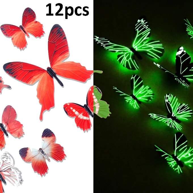 Glowing Butterfly Wall Stickers: Bedroom & Living Room Decor B Green 12PCS