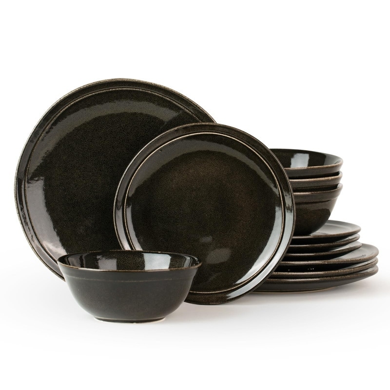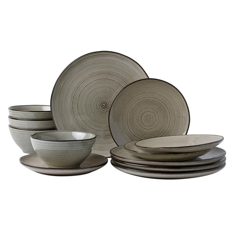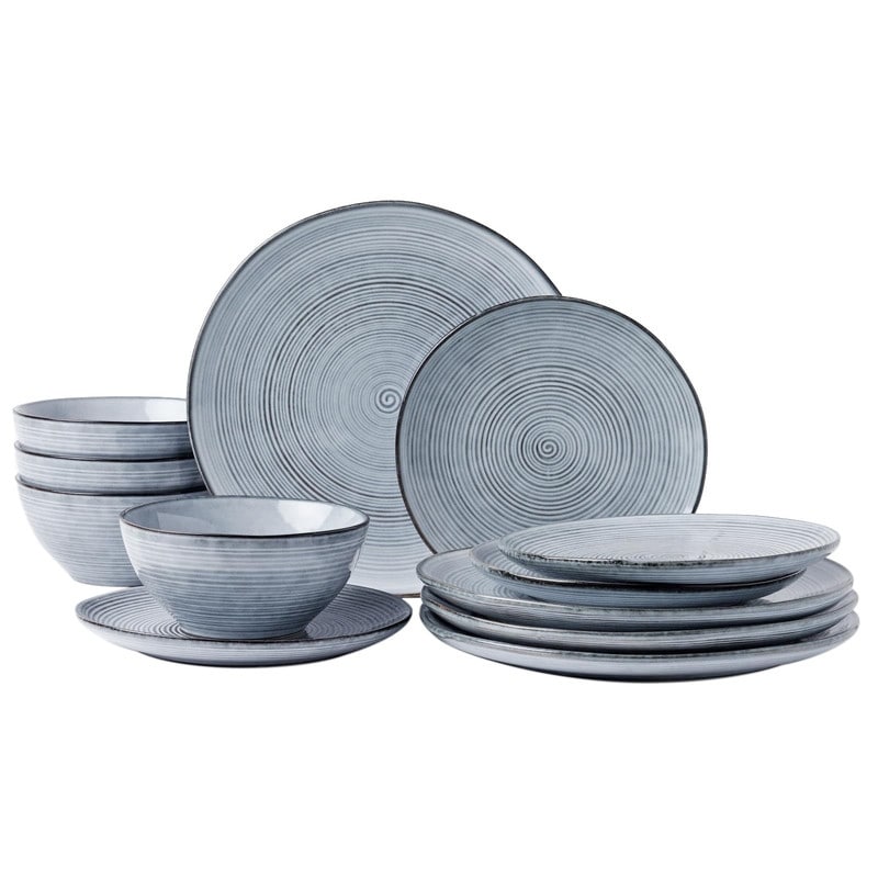Plates and Bowls Sets for 4, 12 Pieces Stoneware Dinnerware Sets - Set(12pcs)