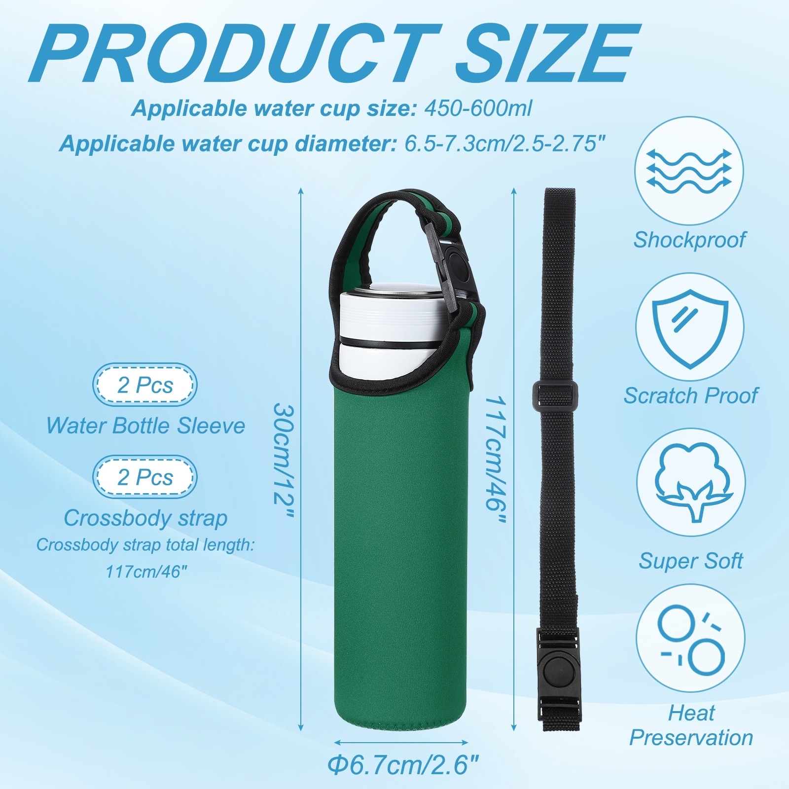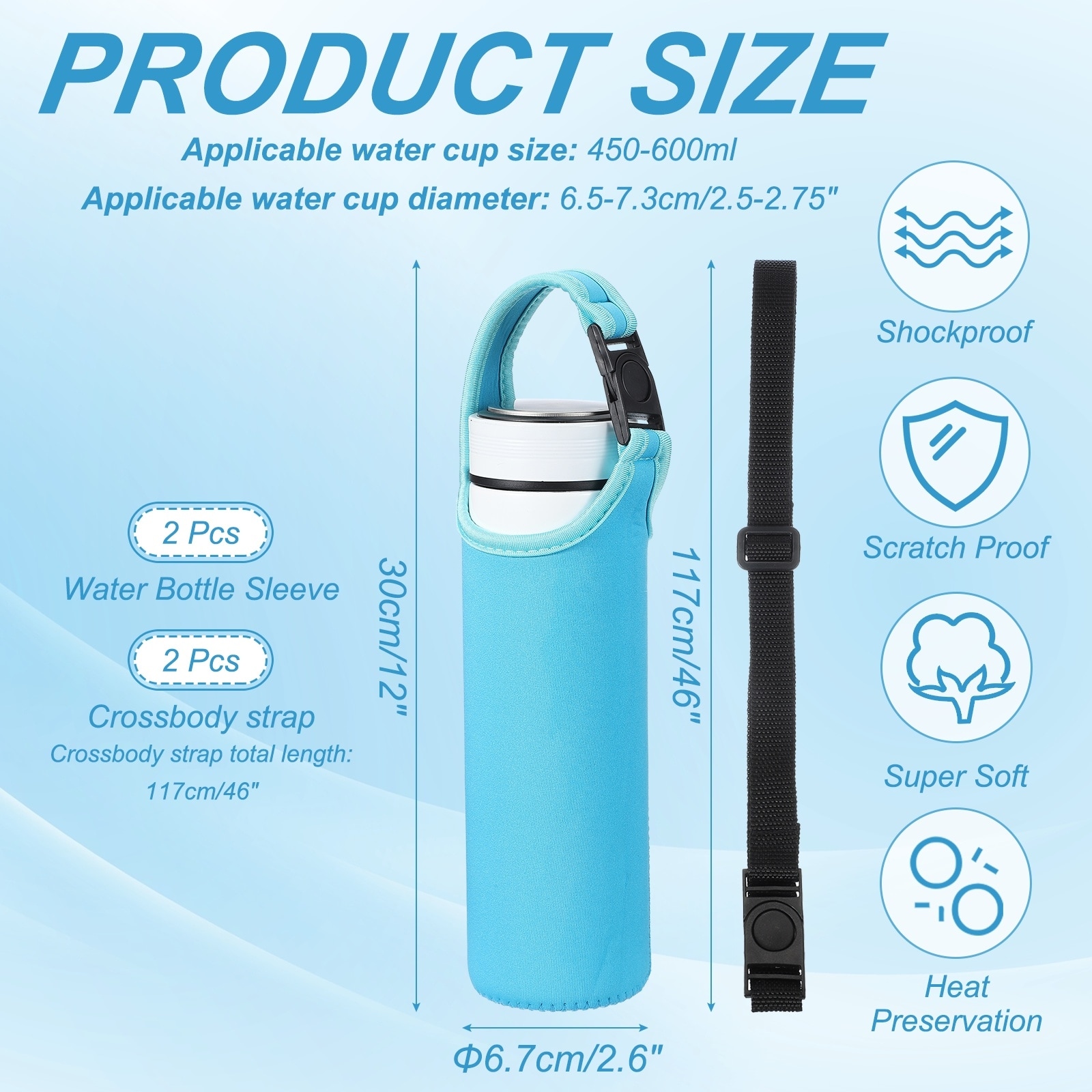 Neoprene Water Bottle Sleeve, Insulated Water Glass Bottle Carrier Bag Collapsible Drink Bottle Sleeve Cover Holder with Straps