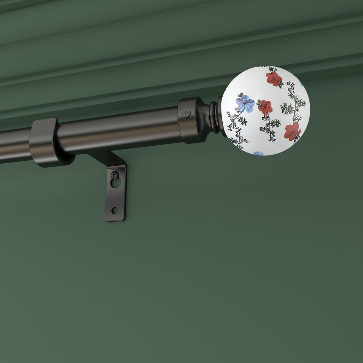 Acroma Adjustable Steel Single Curtain Rod with White Globe Ball Finial.