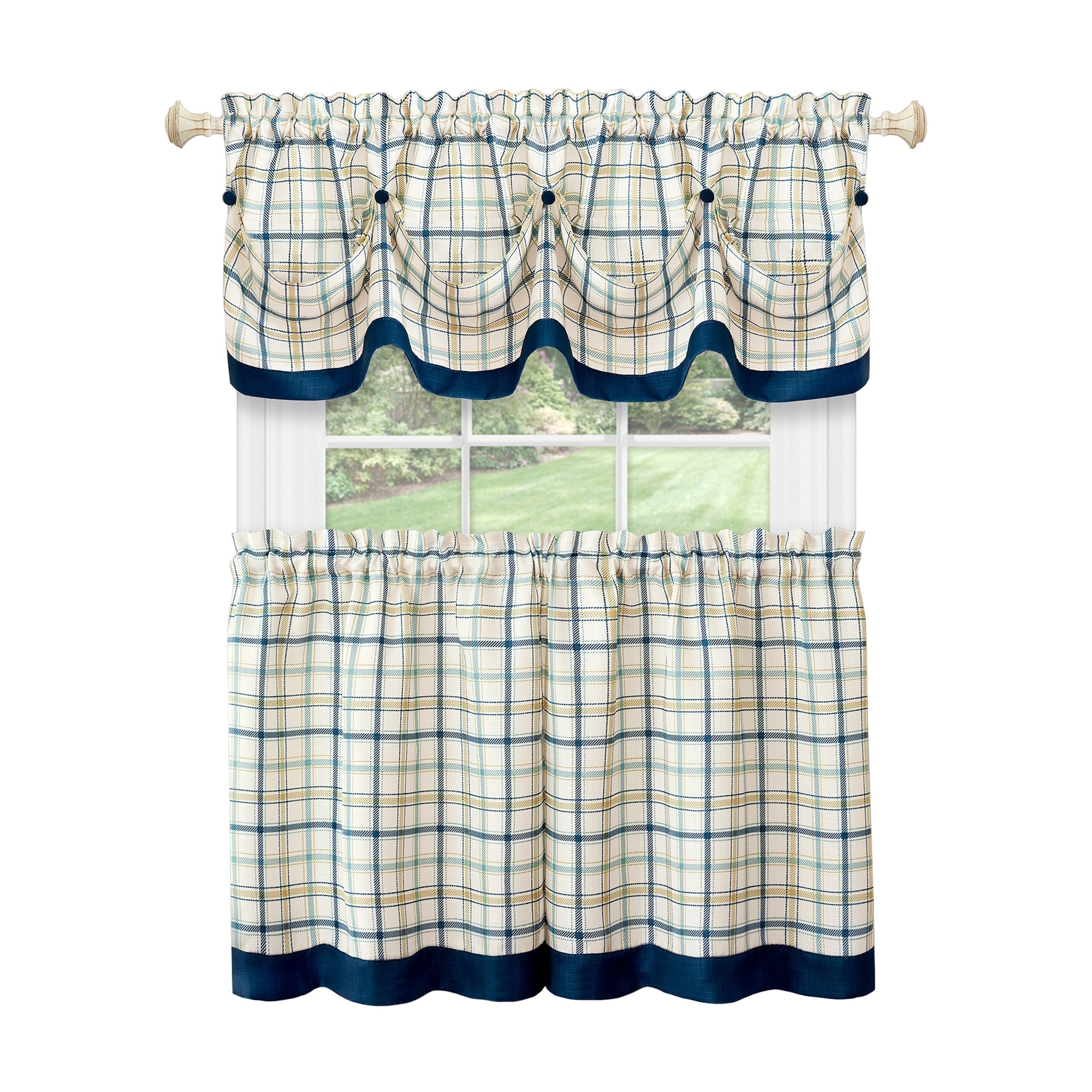 Tattersall Window Curtain Tier Pair and Valance Set