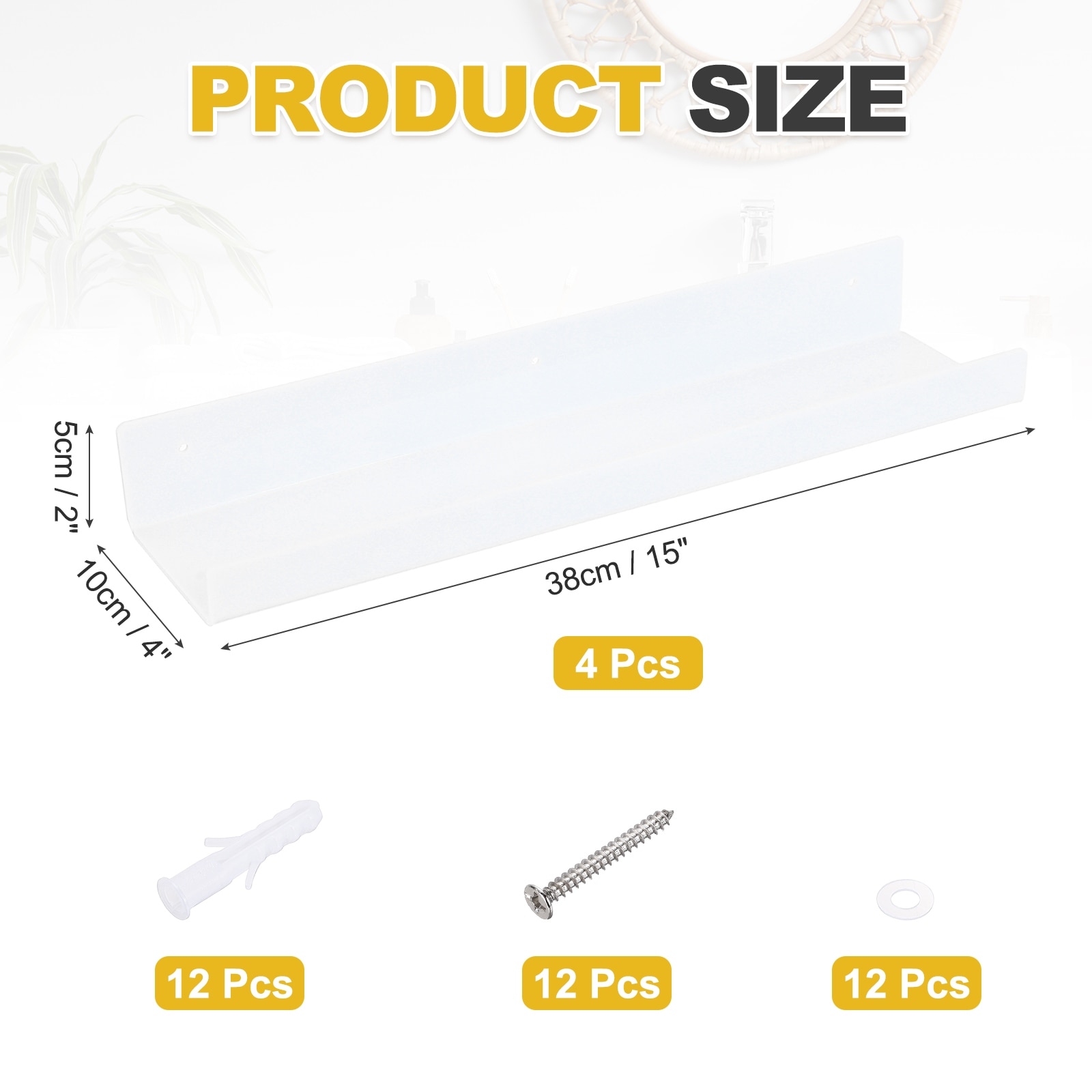 Acrylic Shelves for Wall, Floating Shelves Wall Mount Display Shelf Organizer for Bathroom, Bedroom, Living Room - 15 Inch
