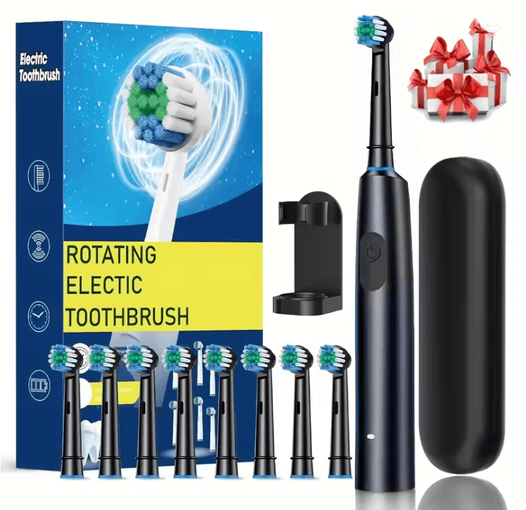 ProClean Rotary Electric Toothbrush Rechargeable With 8 Soft Brush Heads black 8 Heads