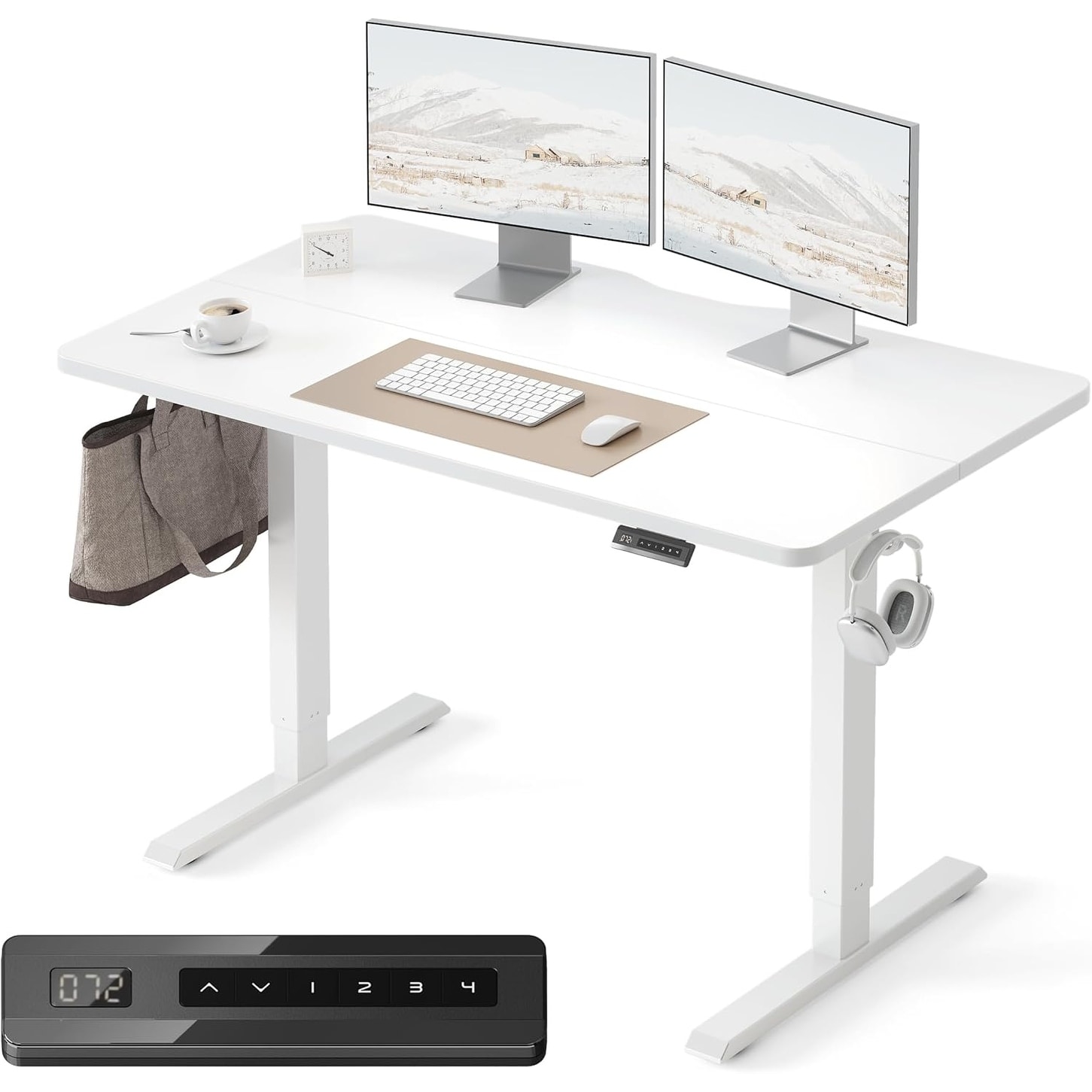 48 x 24 Inches Electric Height Adjustable Standing Desk with Memory Function, Anti-Collision, White Frame/White Top