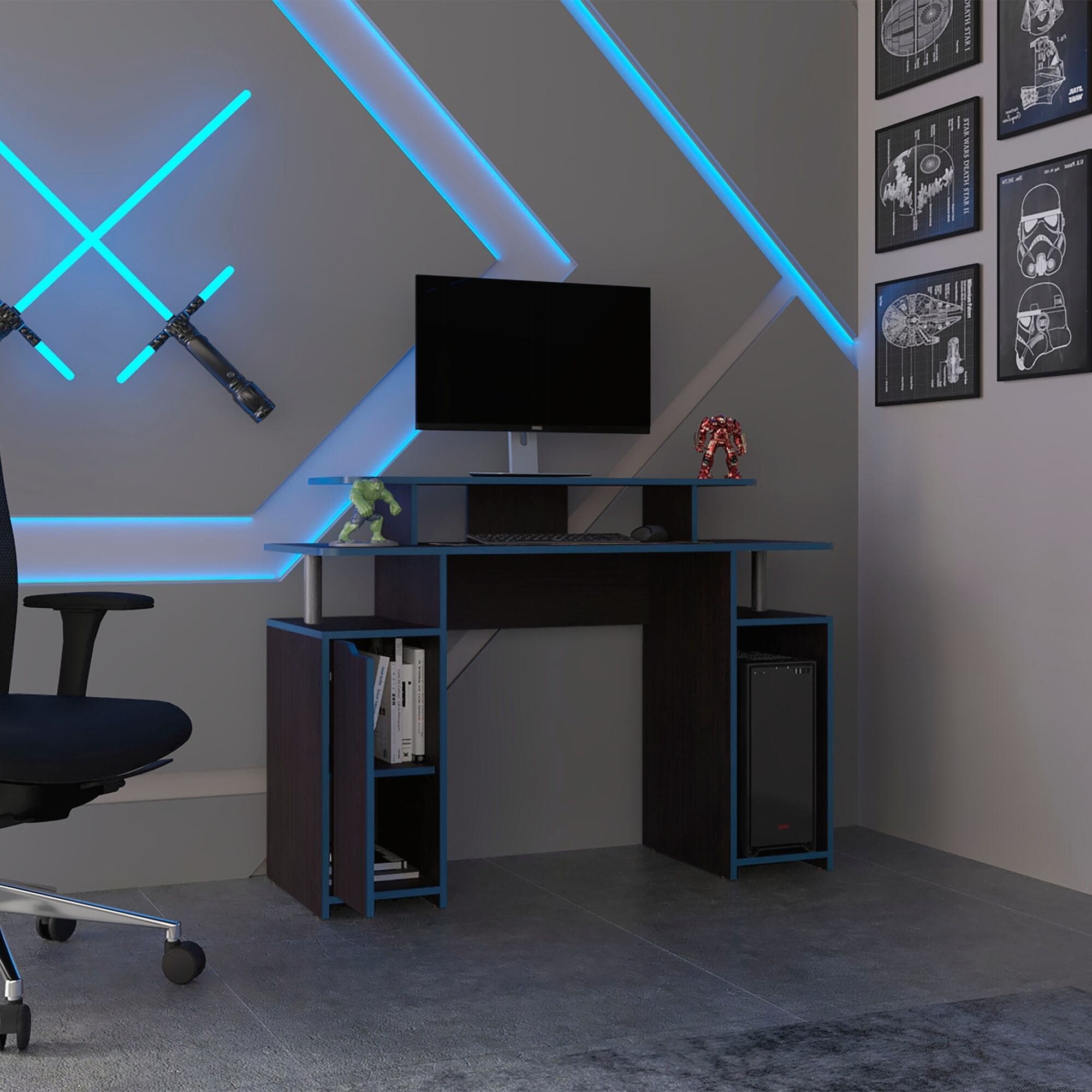 Modern Gaming Desk with 1 Door and 6 Shelves