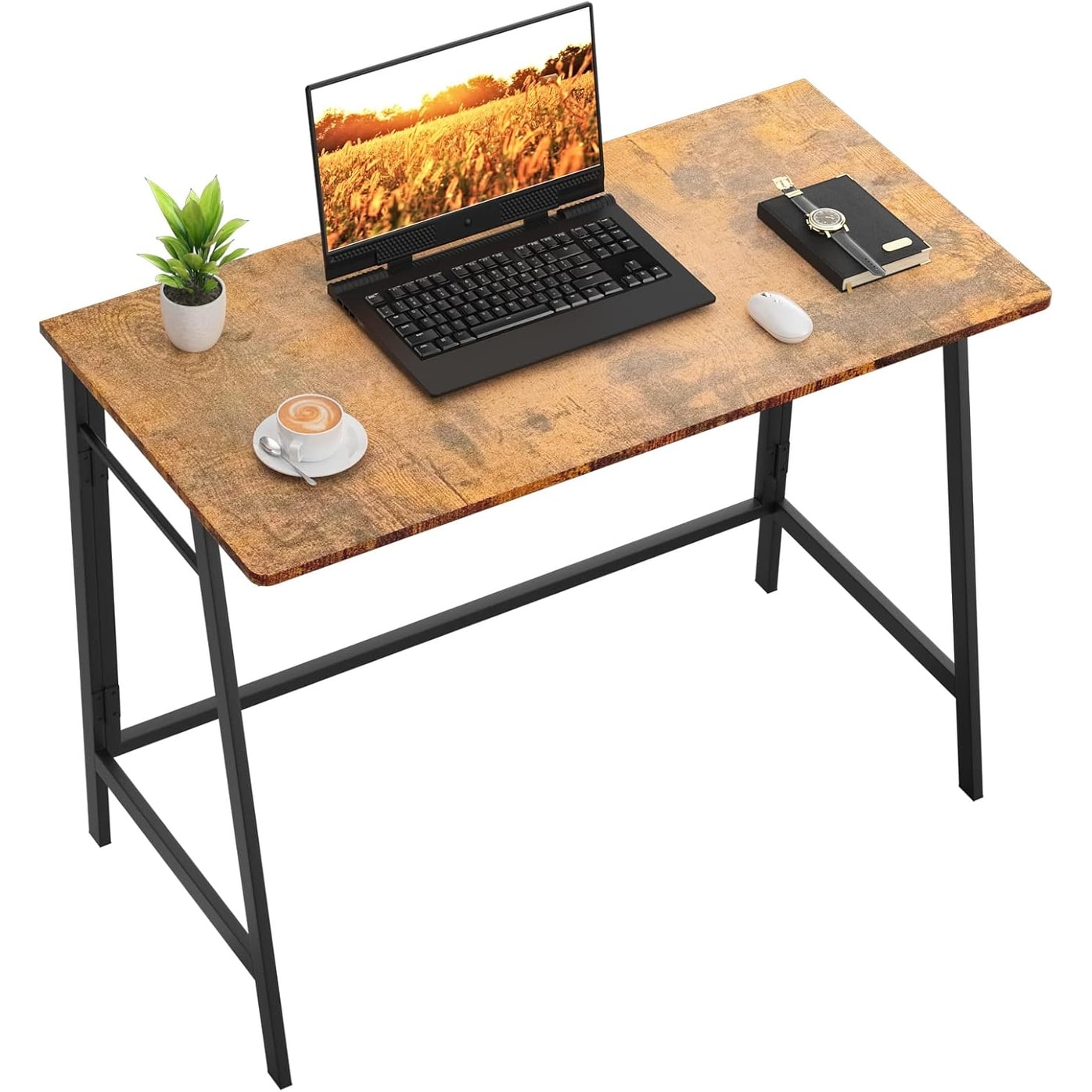 40 Inch Vintage Folding Desk, Space-Saving Foldable Computer Table for Home Office in Brown