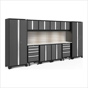 NewAge Garage Cabinets BOLD Series Grey 12-Piece Set with Stainless Top, Backsplash, LED Lights