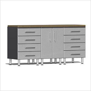 Ulti-MATE Garage Cabinets 4-Piece Garage Workstation Kit with Bamboo Worktop in Stardust Silver Metallic