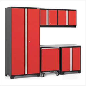 NewAge Garage Cabinets PRO Series Red 6-Piece Set with Stainless Steel Top
