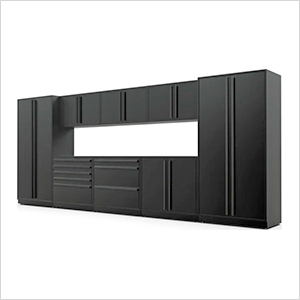 Proslat Garage Cabinets 10-Piece Mat Black Cabinet Set with Black Handles and Powder Coated Worktop