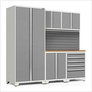NewAge Garage Cabinets PRO Series Platinum 8-Piece Set with Bamboo Top and Slatwall