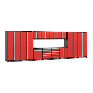 NewAge Garage Cabinets PRO Series Red 14-Piece Set with Stainless Steel Tops and LED Lights