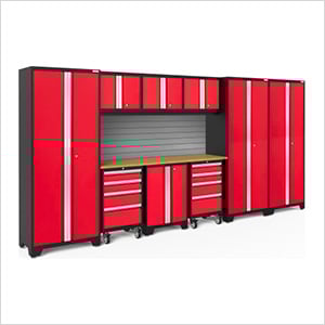 NewAge Garage Cabinets BOLD Series Red 10-Piece Set with Bamboo Top and Backsplash