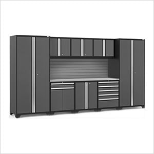 NewAge Garage Cabinets PRO Series Grey 9-Piece Set with Stainless Steel Top and Slatwall