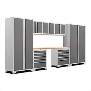 NewAge Garage Cabinets PRO Series Platinum 8-Piece Set with Bamboo Top and LED Lights
