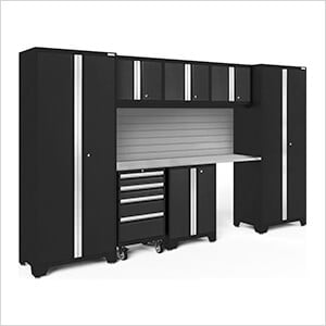 NewAge Garage Cabinets BOLD Series Black 8-Piece Set with Stainless Steel Top and Backsplash