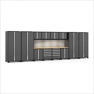 NewAge Garage Cabinets PRO Series Grey 14-Piece Set with Bamboo Top, Slatwall and LED Lights