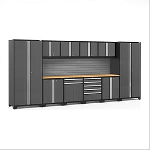 NewAge Garage Cabinets PRO Series Grey 12-Piece Set with Bamboo Top and Slatwall