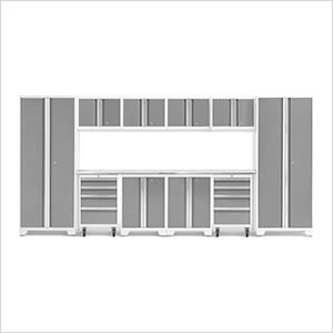 NewAge Garage Cabinets BOLD Series Platinum 12-Piece Set with Stainless Steel Top and LED Lights