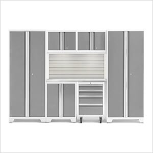 NewAge Garage Cabinets BOLD Series Platinum 7-Piece Set with Stainless Top, Backsplash, LED Lights