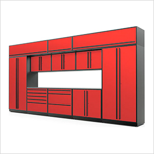 Proslat Garage Cabinets 12-Piece Glossy Red Extra Tall Garage Cabinet Set with Black Handles