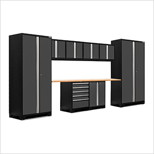 NewAge Garage Cabinets PRO Series Black 6-Piece Set with Bamboo Top