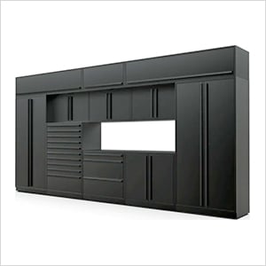 Proslat Garage Cabinets 12-Piece Mat Black Cabinet Set with Black Handles and Powder Coated Worktop