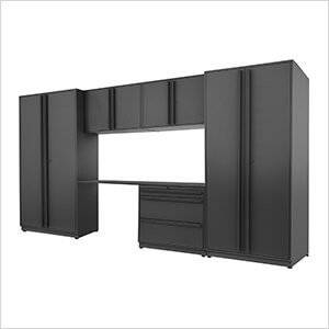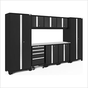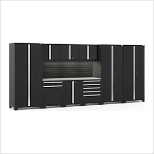 NewAge Garage Cabinets PRO Series Black 8-Piece Set with Stainless Steel Top