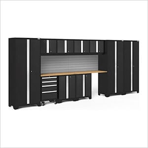 NewAge Garage Cabinets PRO Series Black 8-Piece Set with Bamboo Top