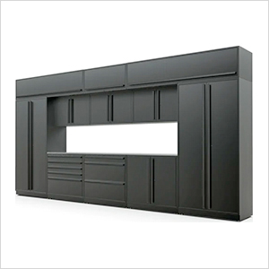Proslat Garage Cabinets 12-Piece Mat Black Extra Tall Garage Cabinet Set with Black Handles