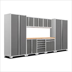 NewAge Garage Cabinets PRO Series Platinum 9-Piece Set with Bamboo Top and LED Lights