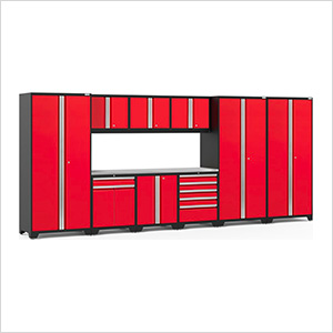 NewAge Garage Cabinets PRO Series Red 10-Piece Set with Stainless Steel Top