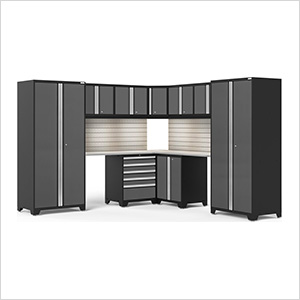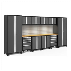 NewAge Garage Cabinets PRO Series Grey 10-Piece Set with Bamboo Top and Slatwall