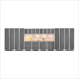 NewAge Garage Cabinets PRO Series Platinum 14-Piece Set with Bamboo Tops