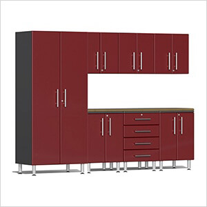 Ulti-MATE Garage Cabinets 8-Piece Garage Cabinet Kit with Bamboo Worktop in Ruby Red Metallic
