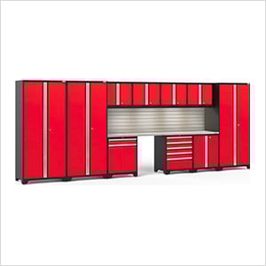 NewAge Garage Cabinets PRO Series Red 12-Piece Set with Stainless Steel Tops