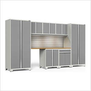 NewAge Garage Cabinets PRO Series Platinum 8-Piece Set with Bamboo Top, Slatwall and LED Lights