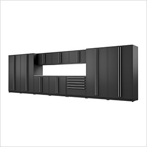 Proslat Garage Cabinets 12-Piece Mat Black Cabinet Set with Silver Handles and Stainless Steel Worktop